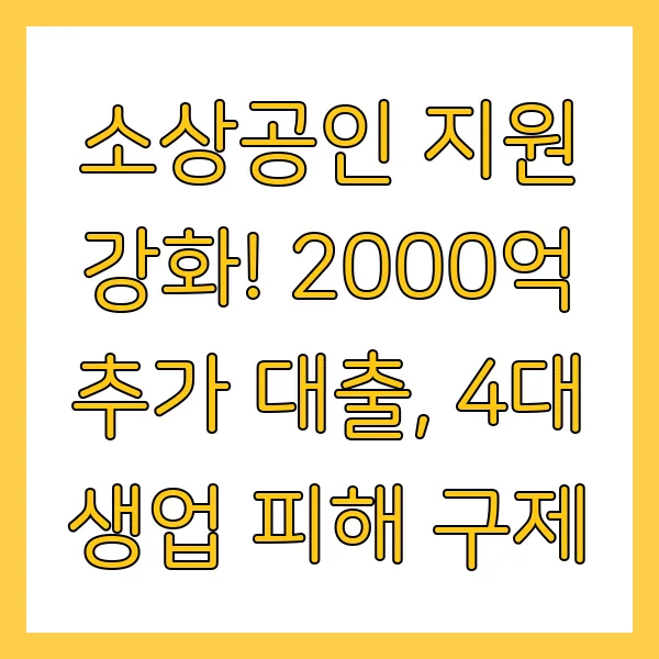 경기 침체와 급변하는 소비 트렌드 속에서 어려움을 겪는 소상공인들을 위해 정부가 2,000억 원 규모의 추가 대출 을 포함한 강력한 지원책을 발표했습니다! 금융 지원 확대, 생업 피해 구제, 지역 상권 활성화 등 다양한 정책으로 소상공인의 재도약을 돕겠습니다 . 자세한 내용을 지금 바로 확인하세요! (소상공인 지원, 정책자금, 대출, 생업 피해 구제, 지역 상권 활성화)
